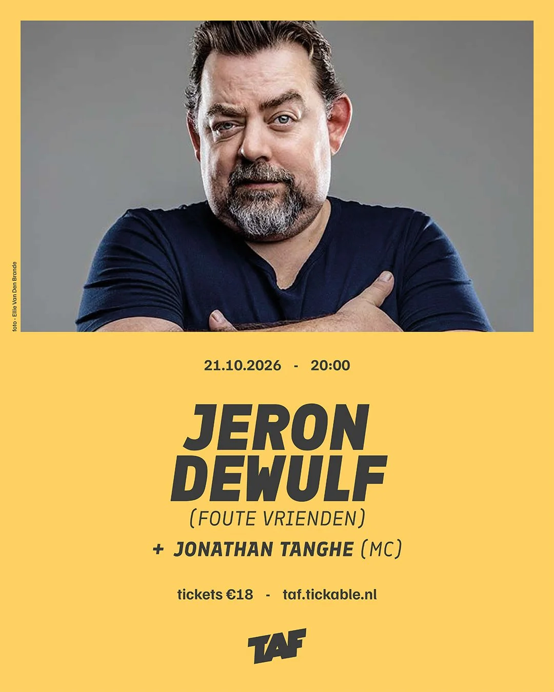 Meermens is muzikant, dichter, schrijver en comedian. Zo schopte hij het in 2025 tot de halve finale van het prestigieuze Leids Cabaret Festival in Nederland. Hij speelde aan de zijde van Nigel Williams, Jade Mintjens, Peter Verelst en Raf Coppens. Op 5 december 2025 verschijnt zijn nieuwe muzikaal album en misschien hoor je dus ook muziek tijdens deze TAF COMEDY. Kort gezegd: Cabaret. We kijken er alvast naar uit om hem op het podium van onze club te zien.